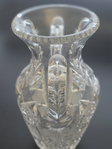 ABP cut glass vase 8"" in diameter at wildest point and weighs 4 lbs. Blank is water clear. It is in good condition.