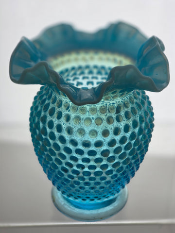 Fenton glass opalescent hobnail blue vase