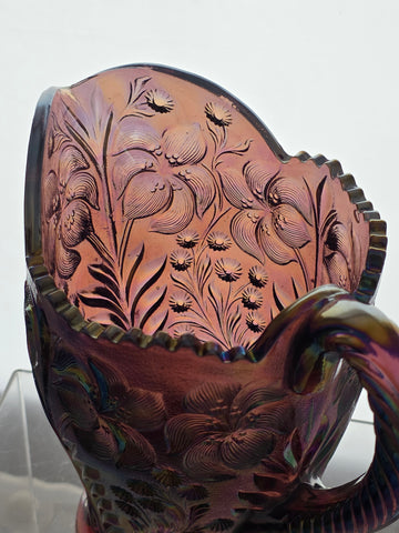 L E Smith carnival Purple Tiger Lily pitcher,