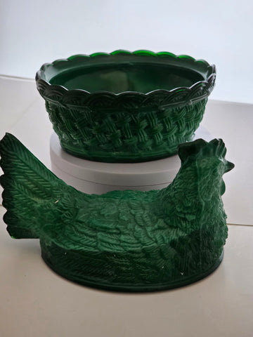 Jade Malachite hen on nest dish
