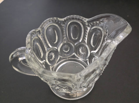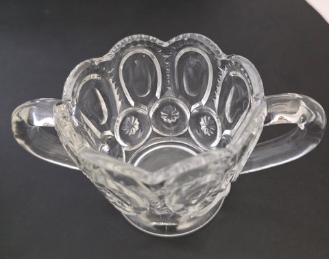 Le Smith clear glass sugar and creamer moon and star. 2.8" high. In  good condition no chips cracks or cloudiness. Can be viewed and picked up at the old L.E Smith Glass factory Mt Pleasant PA 15666