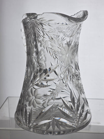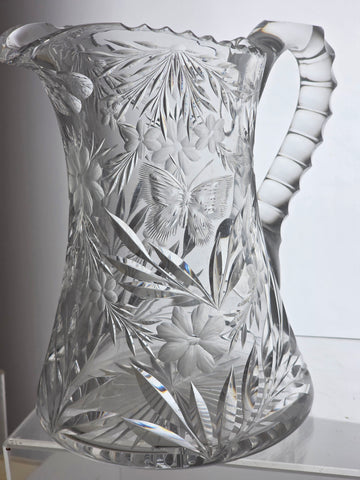 ABP CUT GLASS butterfly pitcher from the American Brilliant Period 1886 - 1916.