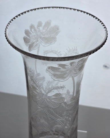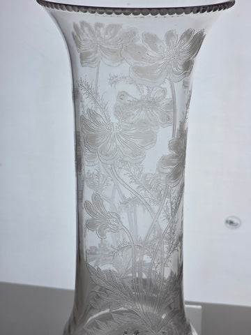 Needle acid etched glass vase antique Dorflinger bob43