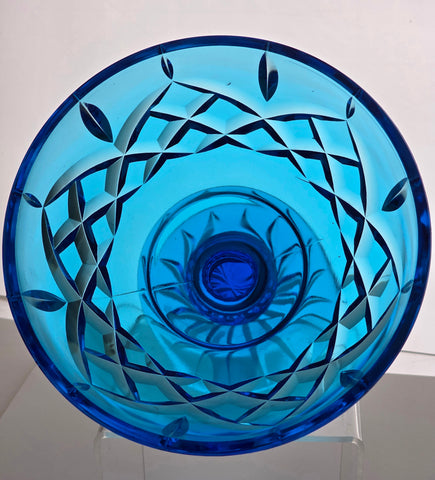 Hand-cut glass compote Westmoreland blue glass blank.