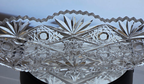 ABP American Brilliant Period Cut Glass crimped bread tray Antique